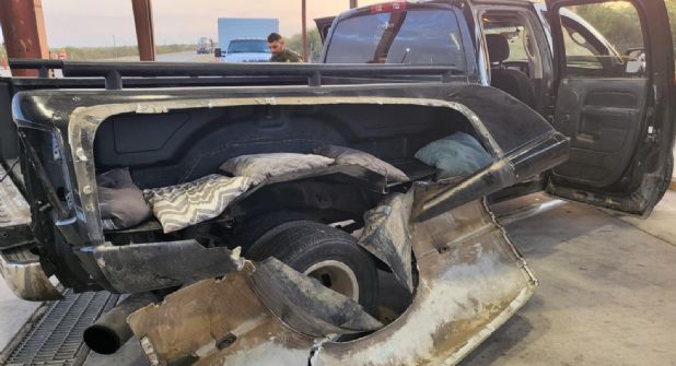 Par de indocumentados ocultos en compartimientos hechizos sobre las llantas rodantes de su troca, bajo los paneles traseros de la misma y otros dos en un tanque auxiliar de combustible abajo del vehículo, llevaba un tipo de Arkansas.