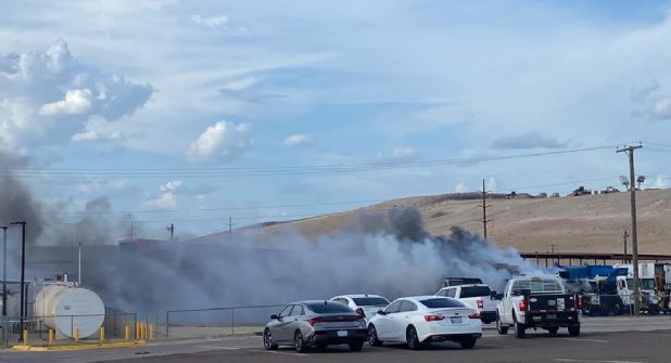 Una gruesa y muy alta columna de humo negro, acompaño a las largas lenguas de fuego, el denso humo se hizo visible en el este de la ciudad.
