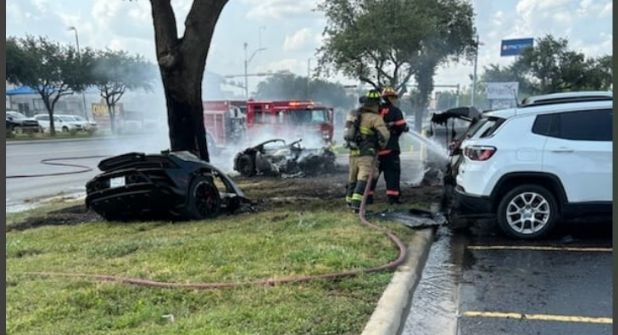 “El Día del Padre” Peña le dio al árbol del restaurante en la cuadra 97 de McPhverson, acera este, y de paso prendió fuego a una camioneta Chevrolet Silverado años 2025, a una vagoneta Nissan 2024 y también el calor de la explosión e incendio, alcanzó a un Jeep 2023.