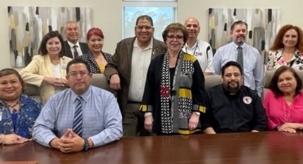 El representante de la Junta Estatal de Educación, Gustavo Reveles, se reunió con la superintendente del Distrito Escolar Independiente de Laredo, Dra. Sylvia G. Ríos, y los líderes del distrito durante su visita a Laredo.