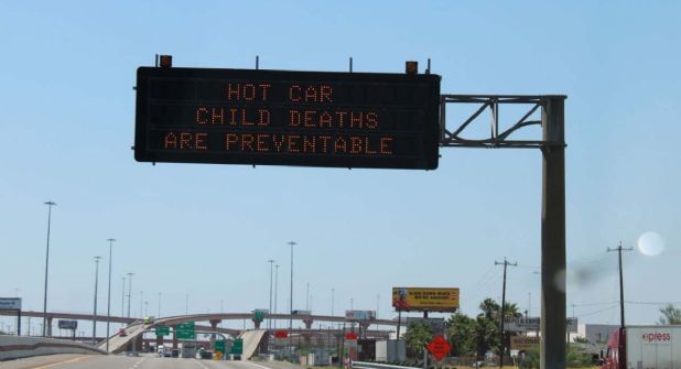 Utilizando las pizarras electrónicas en las carreteras y caminos, la agencia advierte a los automovilistas que no deben dejar a niños encerrados en los vehículos porque esto puede resultar muy peligroso y hasta mortal.