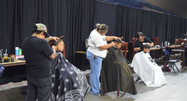 Liam y Leonardo, se cortaron el cabello gratis este miércoles en el piso de Sames Auto Arena; su mami Leslie dijo que se ahorró 50 dólares y ha pagado hasta 80 dólares en estéticas o peluquerías.