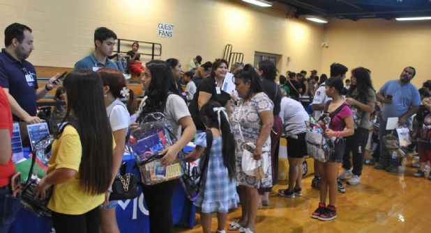 Más de mil niños del sur de Laredo recibieron mochilas con útiles escolares además de servicios médicos gratuitos antes del inicio de clases en las escuelas.