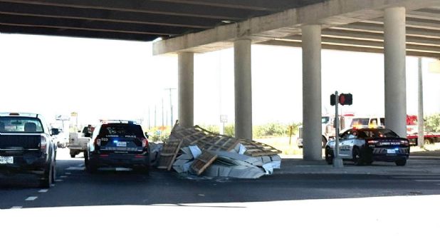 Un tractor-tráiler tuvo accidente y se averió bajo del paso elevado de Bob Bullock-Cuatro Vientos-Jame Zapata-Carretera 359, materiales de la construcción quedaron desperdigados en el piso, el congestionamiento es severo en ese punto.