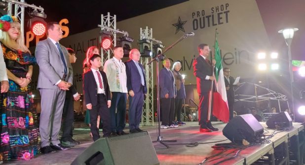 Luego de entonar los himnos nacionales y presentar la bandera de México, el Cónsul Mendoza dió el grito de independencia con las tradicionales vivas ante la euforia y aplausos de los asistentes.