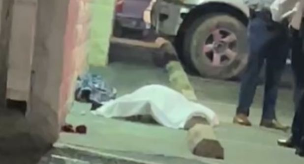 Es un hombre aparentemente arriba de 40 años de edad, estaba tirado junto a la pared del negocio, a un costado del mismo, el personal dijo que se trataba de un indigente que frecuenta la zona.