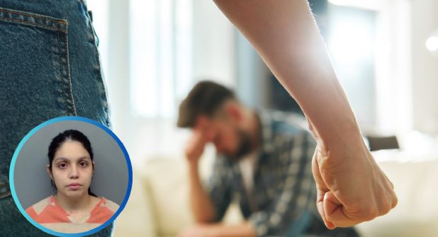 Él se escabulló pero ella lo siguió y le dio el par de puñetazos. Ella fue arrestada con cargos de Continua Violencia a un Miembro Familiar-