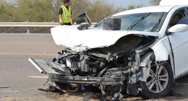 De acuerdo con la información disponible, se trató de un choque en solitario. El vehículo involucrado es un Hyundai Sonata color blanco, el cual sufrió una ponchadura de neumático mientras era conducido, lo que provocó que la unidad se estrellara contra el barandal de la carretera.