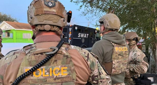 Las divisiones SWAT, Narcóticos y Patrullaje de la Policía de Laredo catearon dos viviendas en el barrio “Las Lomas”, cuadras 9 Este y 10 Este, cerrando por seguridad el tráfico en los cruceros de esta con Tilden. Hendricks y McClelland.