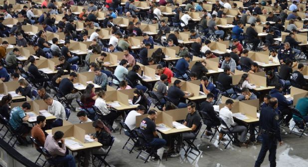 Fueron 405 jóvenes se presentaron al examen escrito o de conocimientos básicos para intentar ingresar a la Policía de Laredo, este miércoles 25 en Sames Auto Arena.