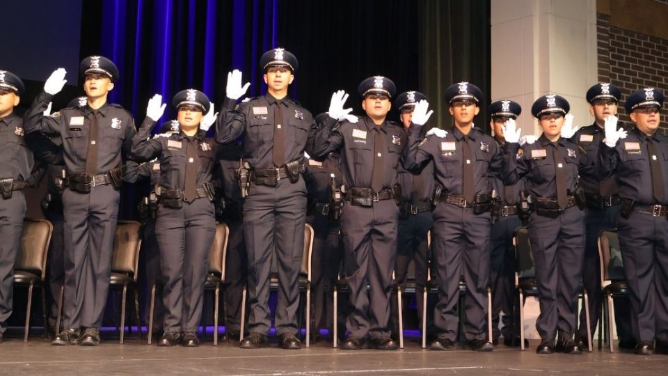 El Departamento de Policía de Laredo dio la bienvenida a los nuevos miembros de esa familia de más de 530 miembros, en el auditorio principal del Colegio de Laredo, donde culminaron sus estudios en las aulas, para después pasar a la calle, al trabajo de campo.