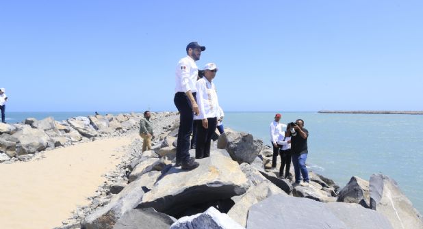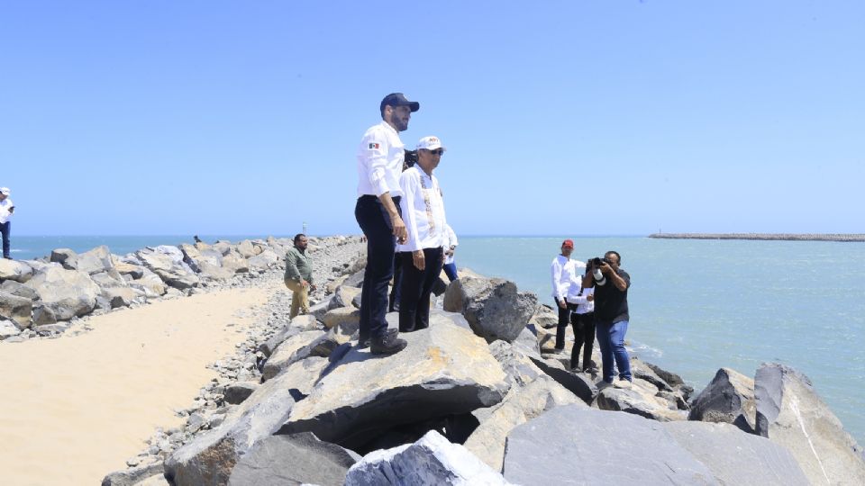 El gobernador y la titular de la Sedatu, junto con el director general de la Comisión Nacional de Vivienda, Rodrigo Chávez Contreras llegaron hasta la zona de las escolleras, donde apreciaron el canal de navegación y conocieron la zona para el desarrollo de la Terminal de Almacenamiento de Pemex, que se convertiría en la más grande e importante del noreste de México.