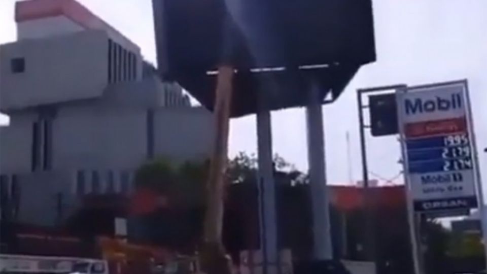 Una pantalla gigante quedó destrozada tras caer esta tarde desde varios metros de altura cuando era colocada por una grúa afuera de un local ubicado en la colonia San Francisco, de Nuevo León.