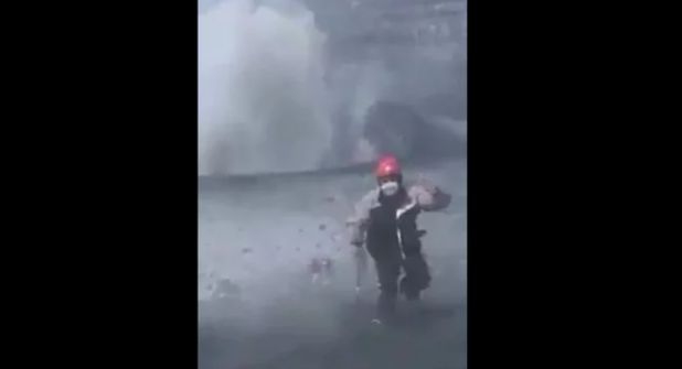 El sujeto que graba el video ya se encuentra en el cráter por lo que capta el instante en el que otros siete de sus compañeros ascienden también hasta lo más alto.