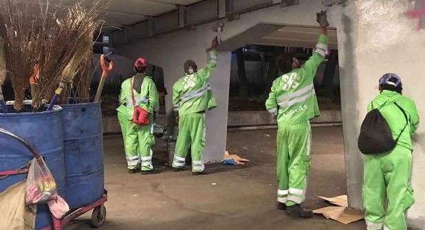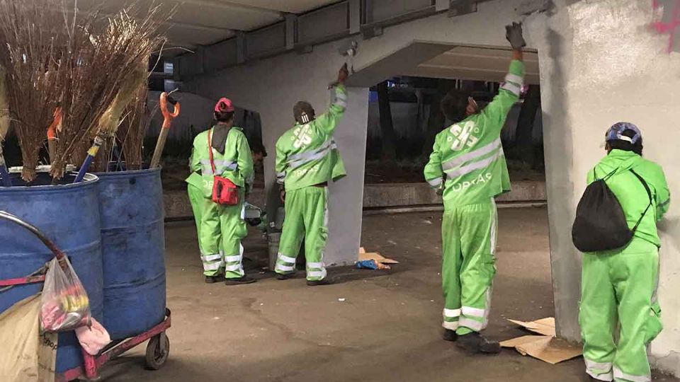 CIUDAD DE MÉXICO.- Empleados de limpieza y mantenimiento trabajaron durante toda la noche para restaurar la Glorieta de Insurgentes, así como las instalaciones del Metrobús que fueron vandalizadas durante las protestas de este viernes.