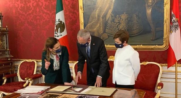 “Con la misma intención de obtener piezas históricas y arqueológicas de México para ser exhibidas en nuestro país durante el Bicentenario de la Independencia, visitó Beatriz al presidente de Austria, Alexander Van der Bellen”, escribió el presidente de México en su cuenta de Twitter.