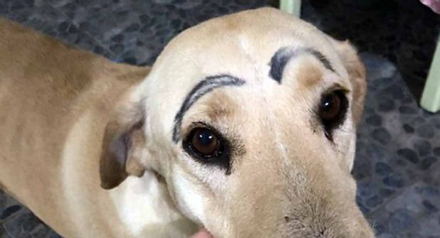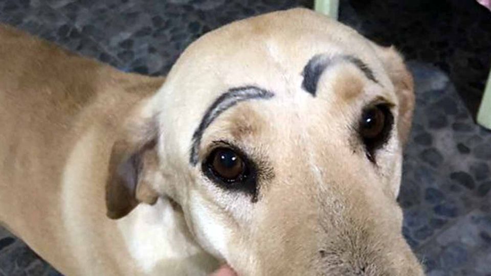 En la imagen se muestra el perro mirando a la cámara y con dos cejas de payado en el rostro; por cierto, una más gruesa que la otra, además de que tiene relleno y la del ojo derecho no. Y cierto es que la foto causó muchas risas, pero no se pasó por alto el hecho de que cualquier mal intencionado se aprovechó del indefenso animalito.