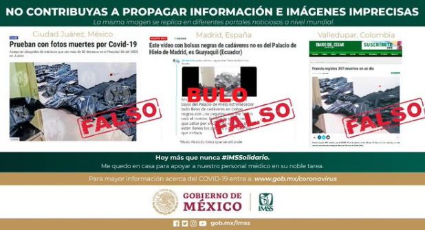Sin embargo, el Instituto Mexicano del Seguro Social (IMSS) aclaró en un comunicado que la información difundida era falsa y que "las imágenes difundidas por este medio corresponden a otros países".