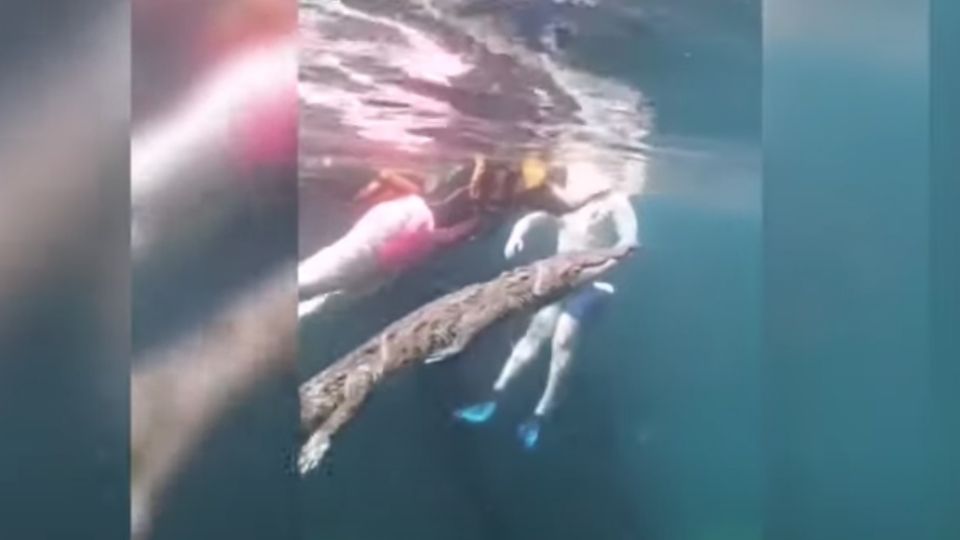 Turistas se divertían en cenote de Tulum y de pronto apareció un cocodrilo de la nada. Todo quedó grabado en video.