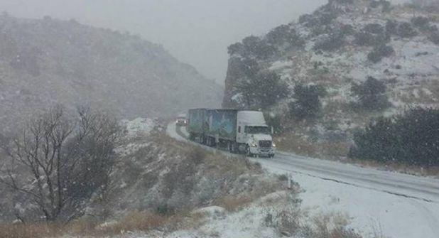 Por la noche la nevada provocó el cierre carretero entre Cananea, Agua Prieta, Sonora y Janos, Chihuahua, a la altura de los Puertos de Cananea y San Luis.