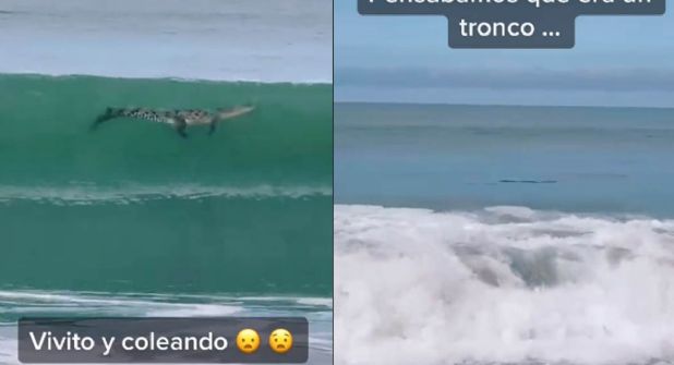 El aterrador momento que paso una familia en la playa luego de confundir un cocodrilo con un tronco, se volvió viral en redes sociales.
