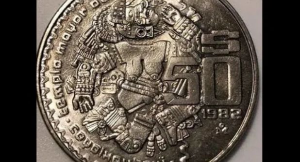 Esta moneda con el valor estratosférico es de 1982 y aparece en el reverso la diosa mexica de la Luna, Coyolxauhqui con la leyenda Templo de México, mientras que en el anverso aparece el Escudo Nacional y la leyenda Estados Unidos Mexicanos y está hecha de está hecha de plata, tiene un diámetro de 35 milímetros y un peso de 19.8 gramos. La pieza está en Michoacán.