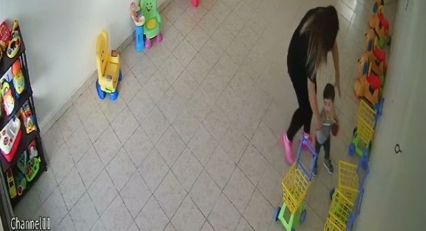 En los videos se puede observar a la profesora identificada como Natalia N cuidando a los pequeños hasta que de pronto decide golpear a un pequeño que se encuentra arriba de un porta bebe dándole un golpe en la cabeza.