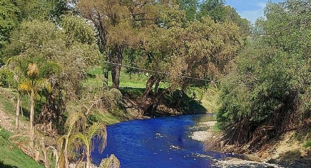 En la colonia Denguí, Hidalgo, las autoridades se vieron alertadas luego de que el Río Tula se pintara inexplicablemente de un color azul, a la altura de la zona conocida como los Arcos.