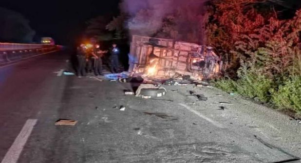 Luego de chocar la camioneta con migrantes se volcó y se incendió al sur de Veracruz, terminando con un saldo de tres personas fallecidas y al menos 23 lesionados.