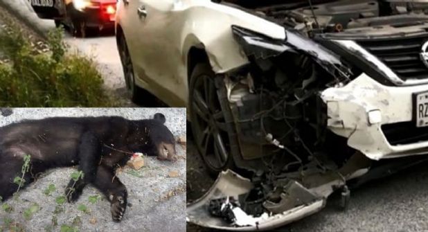 Un conductor que se trasladaba a bordo de un automóvil Nissan color blanco, atropelló a un oso negro que salió corriendo entre la maleza con la intensión de cruzar la carretera.