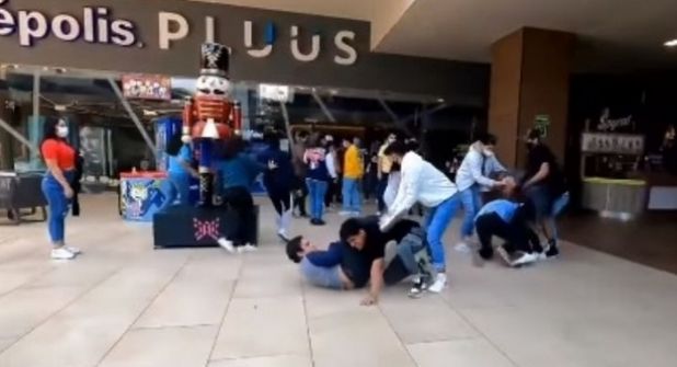 A través de redes sociales se ha viralizado un video en el que se observa a varios jóvenes agarrándose a golpes antes de ingresar al cine de plaza Averanda. Decenas de personas observan en la fila, cómo los muchachitos se enfrascan en una feroz batalla, hasta que varias personas los logran separar., hasta que varias personas los logran separar.