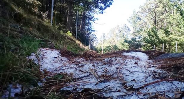 De acuerdo con las temperaturas registradas en la falda de la Sierra de Arteaga fueron entre 3 y 6 grados centígrados durante la noche del miércoles y madrugada de este jueves, por lo que la temperatura en la zona más alta fue por debajo de los cero grados provocando un espectáculo propio de invierno.