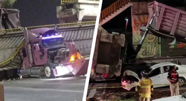 De acuerdo a peritos viales, el fuerte accidente fue consecuencia de que el camión elevó su caja de carga, y alcanzó a tocar la estructura del puente, que no soportó el impacto y cedió la estructura de la edificación.