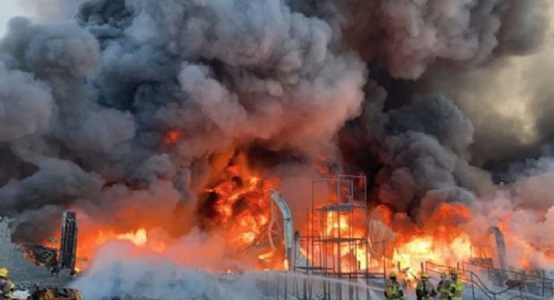 Los cuerpos de rescate siguen en el lugar donde se quema fábrica en el municipio de Santa Catarina, Nuevo León.