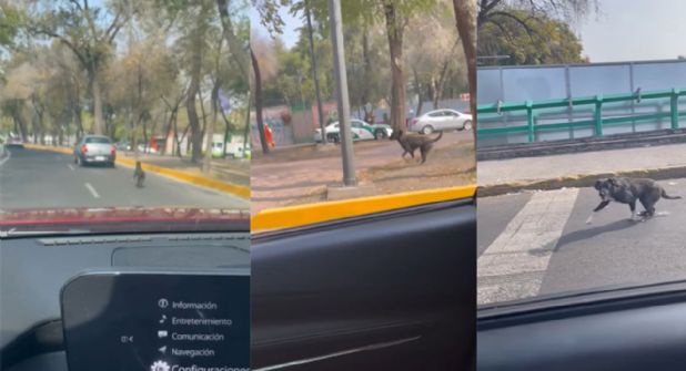 En las imágenes se aprecia como el perrito persigue al vehículo sobre el camellón, momento donde Rafael comienza a grabar.