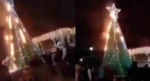 Cuando comenzó el show de luces pirotécnicas, una chispa cayó en el árbol navideño mismo que comenzó a incendiarse en su parte alta, por lo que las autoridades y algunos valientes que se encontraban en el evento ayudaron a extinguir las llamas de la decoración navideña