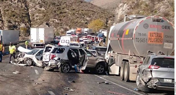 Se reportó que una volcadura a la altura del municipio de Arteaga provocó una enorme fila de autos que esperaban avanzar. Fue en ese momento, que en el tramo mencionado de la carretera 57, un tráiler se quedó sin frenos y se impactó contra al menos 16 vehículos.