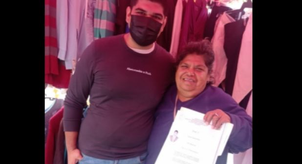 En la fotografía se puede ver al joven junto a su madre, quien se encuentra en el mencionado lugar, vendiendo como todos los días, abrazándola, mostrando orgulloso de donde salió todo para llegar hasta donde está actualmente.