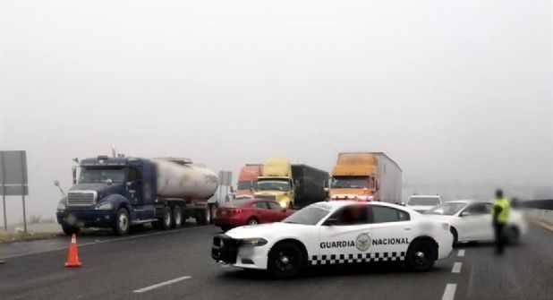 Autoridades de Guardia Nacional y de Grupo Jaguares de Protección Civil cerraron por bancos de niebla y pavimento mojado la Autopista a Saltillo, en Santa Catarina.