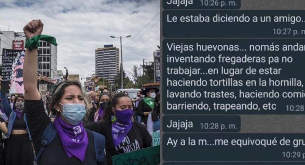 Además de que el maestro llamó a las protestantes “viejas huevonas”, también hizo comentarios sexistas al decir que las mujeres deben estar haciendo labores del hogar, como cocinar tortillas, lavar o preparar la comida.