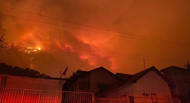 Ráfagas de viento de hasta 90 kilómetros avivaron las llamas en la sierra de Santiago fueron reavivadas provocando la evacuación de más de mil 100 personas.
