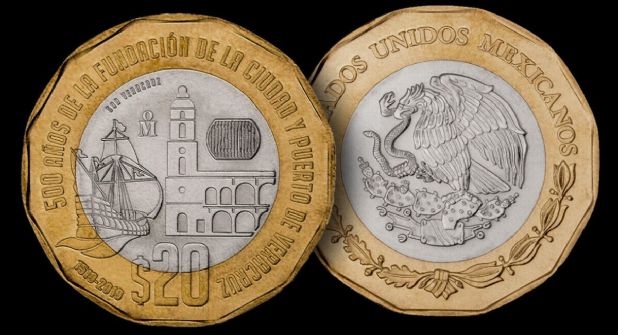 Esta es la segunda moneda de la denominación de 20 pesos con diseño dodecágono (12 lados) y que tiene imagen latente y micro texto como elementos de seguridad.