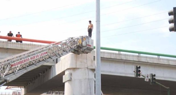 Durante la tarde de este lunes en un puente ubicado en la avenida Sendero, en los límites de Escobedo y San Nicolás de los Garza el hombre logró subir a una de las orillas de la estructura vehicular y amenazó con lanzarse al pavimento.
