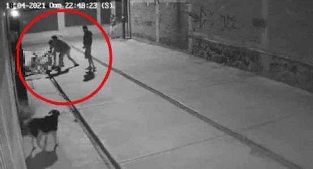 Según se puede ver en el material gráfico, al menos tres sujetos corretean al animal para agrandarlo, en el video primero se observa cómo el can entra en un callejón en donde está colocada la cámara que captó el momento.
