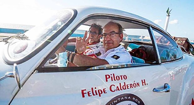 A pocos minutos de la salida del Rally Maya México (RMM) 2021 de autos clásicos, el expresidente de México Felipe Calderón Hinojosa se llevó la nota al chocar el Volkswagen clásico Karmann Ghia, de los 70.