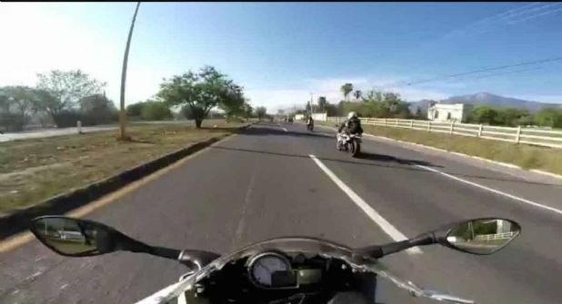 En el video se puede observar el recorrido que hace el motociclista, alrededor se pueden ver más autos y otros motociclistas que al parecer pertenecen al mismo grupo.