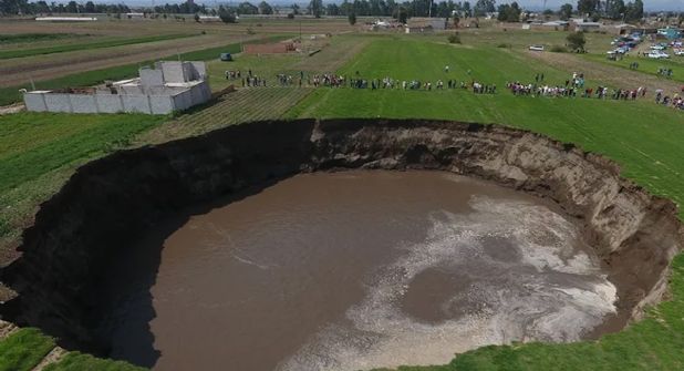 El socavón en Puebla inició con cinco metros de diámetro y luego creció, por lo que se cree que es una falla geológica en la cuenta del alto Atoyac. La investigación tardaría al menos 30 días para determinar las causas con precisión.