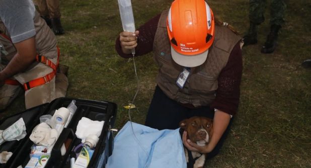 El jefe de la Unidad de Servicio de Emergencia Animal, Hugo Larios, comentó que cuentan con personal y equipo para rescatar a los dos canes que quedaron atrapados desde el lunes en el socavón de Puebla,