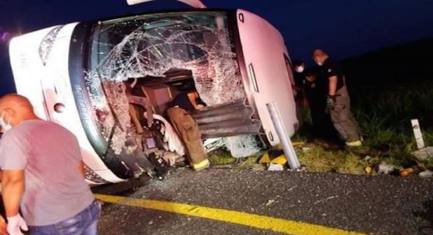Esta mañana murieron 12 personas al registrarse una volcadura en la carretera Monterrey-Reynosa, un autobús se impactó para luego quedar de costado.
