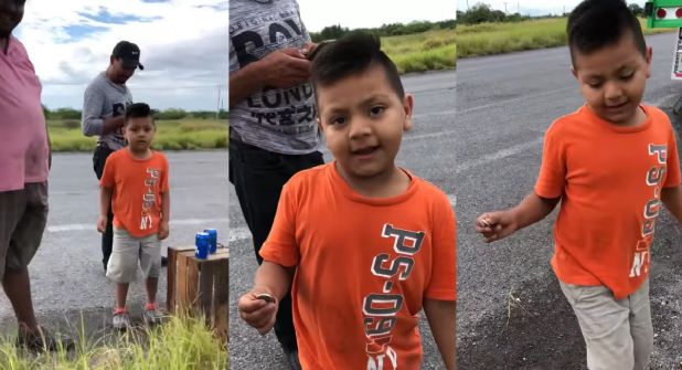 "El niño se paró ahí con su familia y dice que 10 pesos de naranja", se escucha a alguien decir a la persona que grabó el video.